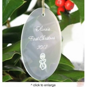 Our intricately beveled glass ornaments. Perfect for any décor, these pretty ornaments include a gold ribbon hanger. Add a personal message for a gift they’ll long remember. Each ornament can be personalized with up to three lines of text with up to 15 characters per line. In addition we can engrave the holiday image of your choice below the text engraving.